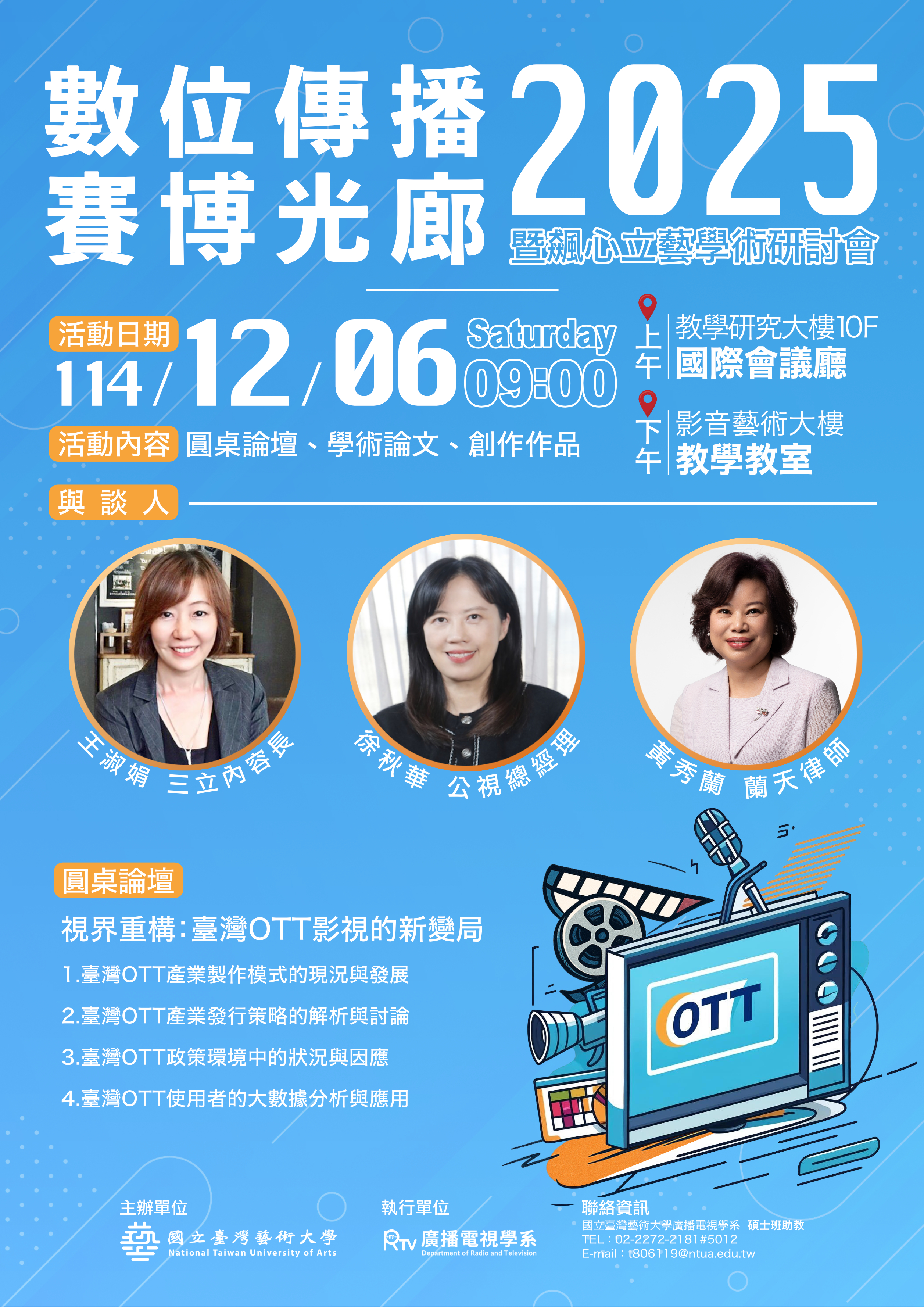 【臺藝大廣電系‖2025數位傳播-賽博光廊暨飆心立藝學術研討會】