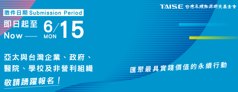獎項即日起開放報名,徵件至 6 月 15 日止,TAISE 誠摯邀請各界分享具體行動經驗,透過交流與對話,共同推動永續發展。活動詳情請洽:(02)2769-8968 分機 201、204、831、102、213,或至活動官網查詢: https://reurl.cc/nlb9XD